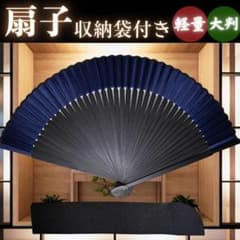 新品 扇子 収納袋付き メンズ 紺 シンプル 大判 超軽量 竹 黒 高級 N