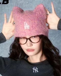 MLB ビーニー karina着用 猫耳 ニット帽 韓国 カリナ ピンク