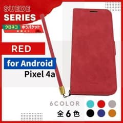 Google Pixel 4a 手帳型 ピクセル スウェード レッド 赤/799