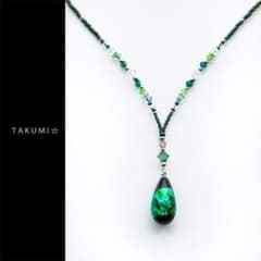 ネックレス 美しいグリーン ホタルガラス エメラルドスワロフスキー