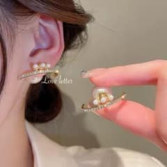 No.339A イヤーカフ型ビジューパールキャッチピアス 韓国 インポート 上品