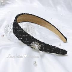 No.05oh ツイードキラキラビジューカチューシャ ブラック 韓国 量産型地雷