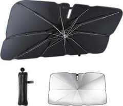 一木良品【傘型・車用フロントサンシェード】軽自動車対応 フロントガラス用 日よけ 遮光 UVカット 紫外線対策 遮熱 断熱 車内高温防止 車中泊グッズ 折りたたみ式 カー用品 簡単収納 コンパクト (Lサイズ)