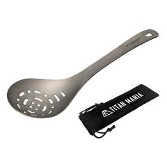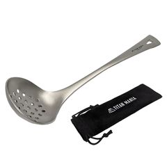 TITAN MANIA(チタンマニア) 穴あきおたま レードル チタン製 軽量 頑丈 直火 お玉 一体型 調理器具 キッチンツール キャンプ ソロキャンプ アウトドア用品 キャンプ用品 収納袋付き 1