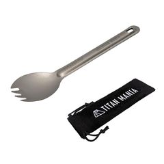 TITAN MANIA(チタンマニア) フォーク カトラリー チタン製 超軽量 頑丈 吊り下げ 食器 調理器具 アウトドア キャンプ ソロキャンプ アウトドア用品 キャンプ用品 収納袋付き 1