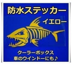魚 防水ステッカー(左向イエロー)骨 釣り クーラーボックス 釣り道具 シール