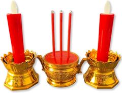 シャンディニー(Chandeny) LED ろうそく お線香 セット 電池式 仏具 火災防止 お盆 お参り 仏壇 法事 法要 法会 仏事 (レッド)
