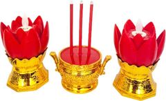 シャンディニー(Chandeny) 電子式 線香 ロウソク 火を使わない LED 香炉 お香 蝋燭 仏具 仏壇 法事 法要 法会 仏事 (レッド)
