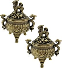 AhhYouMe(アーユーミー) お香立て ミニ 線香立て コーン ヨガ 香炉 瞑想 浄化 蓋付き (麒麟 2個セット, ワンサイズ)