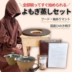 【新品】よもぎ蒸し6点セット 国産ヒノキ椅子 檜 袖ありフードありマント