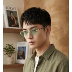 リムレス 伊達メガネ グリーンレンズ 男女兼用 UVカット 新生活