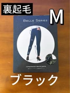 新品 裏起毛タイプ ベルシリーズ 着圧デニムパンツ M ブラック op2