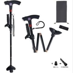 杖 軽量 4点支持+2WAYベース LEDライト & 100dBアラーム付き