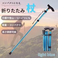 折りたたみ杖 つえ ブルー ステッキ 介護 登山 散歩 つえ 水色 滑り止め付