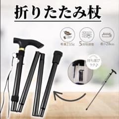折りたたみ 杖 ステッキ 軽量 黒 アルミ製 高さ調整 介護 散歩 登山 伸縮杖