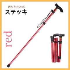 新品【折りたたみ杖 コンパクト ステッキ】レッド 登山 リハビリ 介護