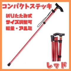 杖 コンパクト ステッキ 折りたたみ 軽量 つえ 歩行支援 登山 介護 レッド