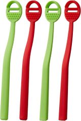 舌クリーナー4個パック – BPAフリー – 口腔衛生ケア – 口臭軽減 – マッサージヘッド付きダブルスクレーパー – レッド 2パック グリーン 2パック