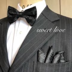蝶ネクタイ ポケットチーフ2点セット/フォーマル/ブラックペイズリー K