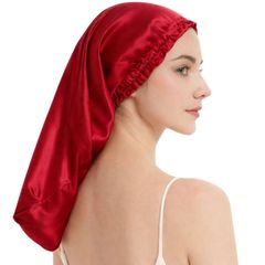 ナイトキャップ ミドルロング ワインレッド シルク調 ポリエステル100% 就寝時用 ヘアケア ヘアキャップ 摩擦軽減 丸洗いOK フリーサイズ