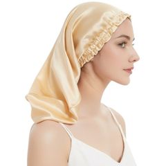 ナイトキャップ ミドルロング シャンパン シルク調 ポリエステル100% 就寝時用 ヘアケア ヘアキャップ 摩擦軽減 丸洗いOK フリーサイズ