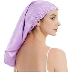 ナイトキャップ ミドルロング パープル シルク調 ポリエステル100% 就寝時用 ヘアケア ヘアキャップ 摩擦軽減 丸洗いOK フリーサイズ