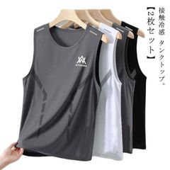 タンクトップ メンズ 2点セット 接触冷感 ノースリーブ スポーツウェア 無地 涼しい 袖なしTシャツ ひんやり トレーニングウェア レイヤード Uネック ジム 筋トレ ランニング トップス 運動着