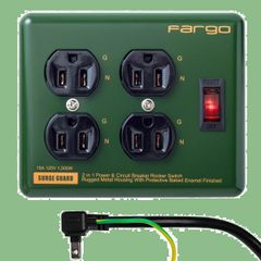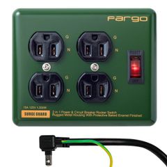 【数量限定】【大人気】TAP STEEL 電源タップ スチール製 3ピン対応 ファーゴ アース線付き コード 壁掛け Fargo 固定 (オリーブ 4個口1.8m)
