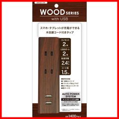 トップランド(Topland) USB 電源タップ コンセント2個口 USBポート2個口 延長コード 1.5m 雷ガード 木目調コード オートパワーシステム搭載 ダークウッド M4020-DW