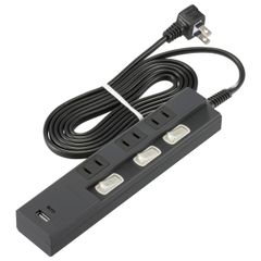 新品 オーム電機 電源タップ 3個口 個別スイッチ付き PD対応Type-C/Type-Aポート付き 2m ブラック HS-TPU32PD23-K 00-1012 OHM