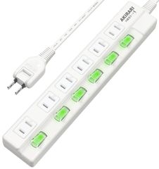 【在庫セール】テーブルタップ 延長ケーブル 家庭用 スイッチ電源タップ 6個口 ほこりシャッター付 雷ガード 過電流 ホワイト 過熱保護 すき間 コンセントタップ 180度スイングプラグ トラッキング防止 AKIRARI 節電 省エネ 2M 延長コード 6口