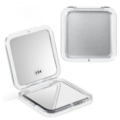 Mirrorvana 小型コンパクト15倍拡大鏡 旅行用 - ハンドヘルド 折りたたみ式 & 超軽量 - ミニポケットサイズの財布用拡大鏡 - 正方形 3.3インチ x 3.3インチ 0