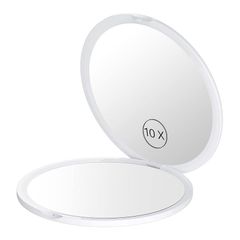 Gospire コンパクトミラー 10倍拡大鏡 拡大両面化粧鏡 コンパクト メイクミラー 携帯 両面鏡 折りたたみ シンプルなデザイン 角度調整可 超軽量 ホワイト 0