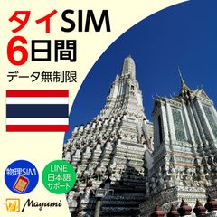 【タイ 無制限 物理SIM チャージ可能】 6日間 完全無制限 データ通信専用(電話番号なし)4G 9G 高速データ通信 物理SIM プリペイドSIM 留学 海外出張 海外旅行 ワーホリ 短期留学 使い放題
