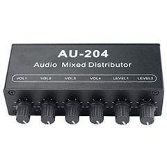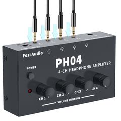 【在庫処分】ポータブル 超コンパクト 金属製 ヘッドフォンスプリッター ステレオオーディオアンプ 3.5mmメスAUX分配 ヘッドホンアンプ 4チャンネル 黒色 PH04 Audio スタジオ/ステージ適用(電源付き) Fosi