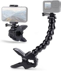 PULUZ ジョーズフレックス クランプマウント、アクションカメラクランプクイックリリースベースネック調節可能スポーツカメラアクセサリー電話クランプ付きGoProHero11/10/9/8/7/Insta 360/DJIアクション/アクションカム