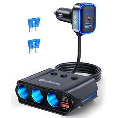 2025進化モデル SONRU 7 in 1 シガレットライタースプリッター、180W [デュアルPD & QC 3.0] カーチャージャーアダプター、12V/24V カーUSBアダプター マルチソケット 電圧計付き 急速充電 iPhone 16/15/1 1