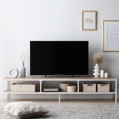 RASIK テレビ台 ローボード 伸縮 幅75~133cm 木目ホワイト オープン 収納 コーナータイプ レイアウト 自由 お客様組立 Aureva オーレヴァ