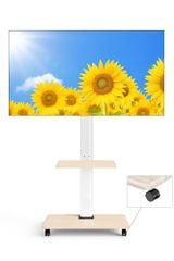 PETOOP テレビスタンド 壁寄せ キャスター付き tvスタンド テレビ台 32?65型 高さ調節・首振り 棚板/配線隠し 木製 棚板 モニタースタンド VESA 100×100?600×400 ナチュラル色 (ホワイト 白)