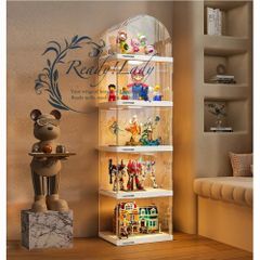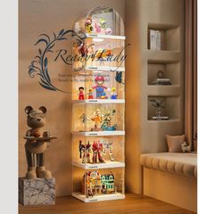 ディスプレイケース フィギュア 棚 アーチ型天板 LEDライト付き 防塵収納ケース フィギュア・楽高展示用 磁吸ドア 幅40cm (6層-ホワイト)