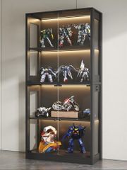 #2002 両扉 強化 ガラス ケース 4段 ブラック 鍵付き 豆脚付き 転倒防止器具付き フィギュア プラモデル プラモ 鑑賞 展示 自宅 店舗 ディスプレイ 付属品 ※一部地域離島別途配送料有