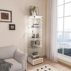 コレクションケース コレクションシェルフ ガラスディスプレイキャビネット4段 高さ調節可能 フィギュア 収納 背面ミラー 強化ガラス棚 サイズ:幅36*奥行26.5*高さ121CM グレー