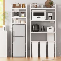 即日・翌日発送❣️1720m【幅伸縮・2口コンセント・高さ調整】レンジラック ゴミ箱上ラック 冷蔵庫上 キッチン 棚 W50~80×D42×H170cm 洗濯機 レンジ棚 耐荷重90kg 高さ13段階 フック付き 頑丈 食器棚 炊飯器 (ホワイト)