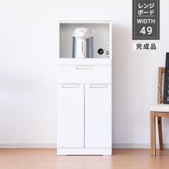 【新品】レンジ台 レンジボード カウンター収納 幅49cm 高さ120cm コンパクト キッチン収納 ホワイト 完成品 白 食器棚 家電収納 スライドカウンター スリム コンセント付き エナメル塗装 シンプル 北欧 幅49 「商:大」 「才:11」