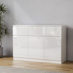 FUFU&GAGA 光沢キャビネット 幅120x奥行40x高さ83cm サイドボード リビング 収納 おしゃれ インテリア家具 転倒防止 ホワイト/
