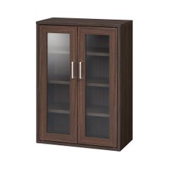 白井産業 キャビネット カップボード キッチン収納 ガラスキャビネット 同シリーズで組み合わせ自由自在 一人暮らしの部屋や狭いスペースにぴったりサイズ ダークブラウン 木目柄 ベーシックデザイン 幅56.6×奥行29.5×高さ80cm FUL-8055GDK/