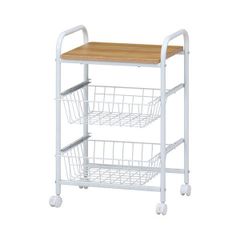 【ポイント14倍!12/5限定】 キッチンワゴン キッチン収納 幅45cm ホワイト×ナチュラル キャスター付き バスケット付き スチール 組立品 ダイニング 台所