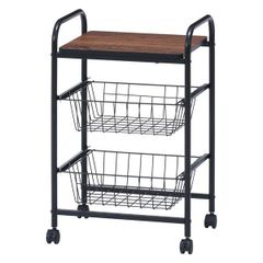 【ポイント14倍!12/5限定】 キッチンワゴン キッチン収納 幅45cm ブラック×ブラウン キャスター付き バスケット付き スチール 組立品 ダイニング 台所