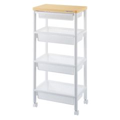 山善(YAMAZEN) ワゴン キッチンワゴン キャスター付き 4段 (ステンレス天板耐熱温度 : 200度) 幅24×奥行50(取っ手含む奥行53)×高さ85cm 収納 ラック 組立品 ホワイト RSW-24(WH) 1