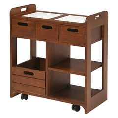 萩原 キッチンストッカー キッチンラック 野菜ストッカー キャスター付き 幅60cm 【すぐに使える完成品】 シンプル 木製 天然木 ブラウン MUD-6410BR 1